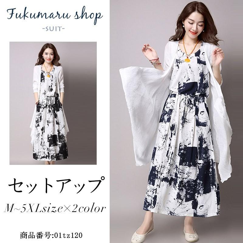 セットアップ ワンピース レディース 2点セット セットアップ春 きれいめ ノースリーブ ワンピース ロング丈 カーディガン 白 大きいサイズ 01tz1 福丸 通販 Yahoo ショッピング